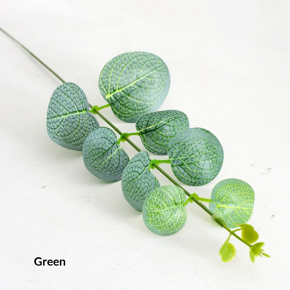 - Artificial Eucalyptus Leaves with Lifelike Texture Meticulously crafted to capture the soft, silvery-green beauty of real eucalyptus foliage. Each leaf features authentic veining, natural color gradients, and realistic texture for convincing botanical charm.