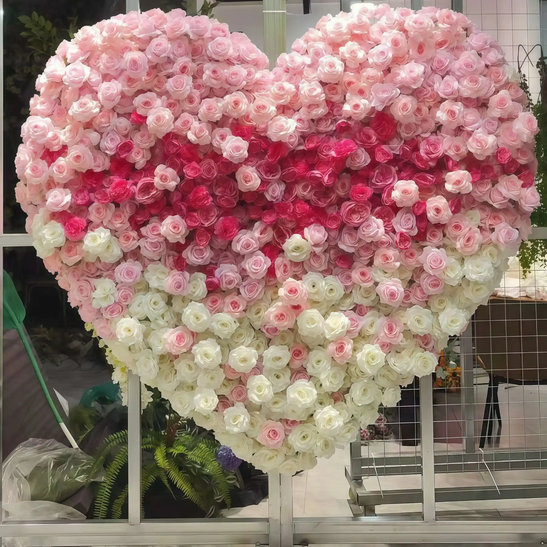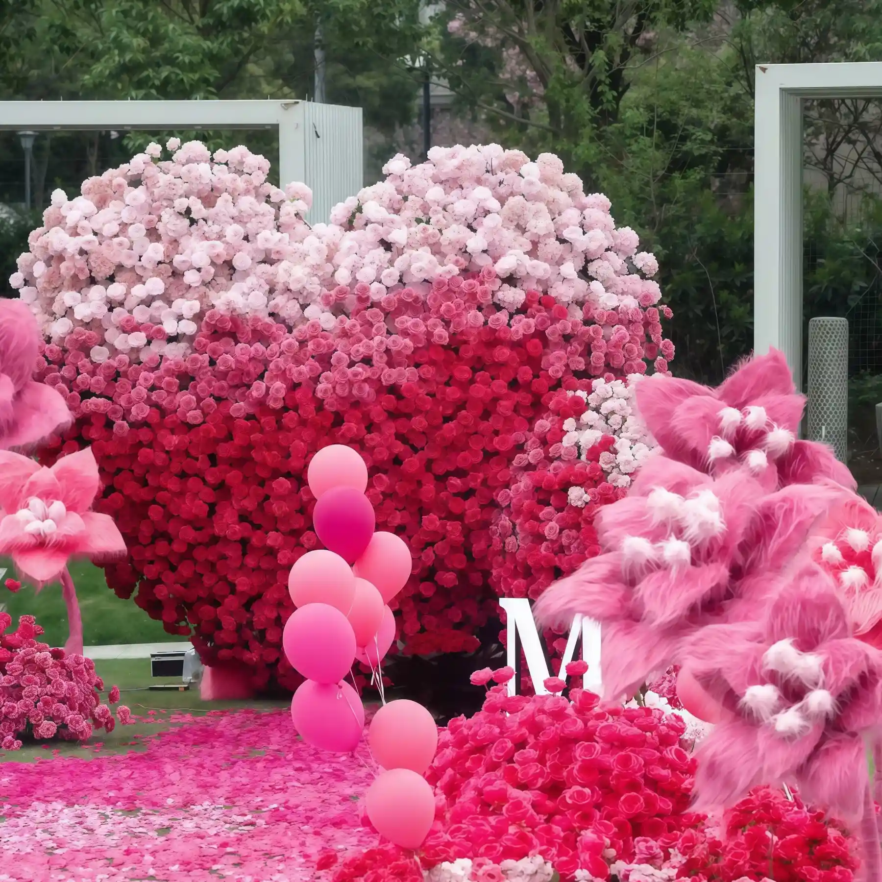 Heart-Shaped Fabric-Base Artificial Flower Wall