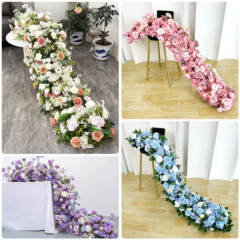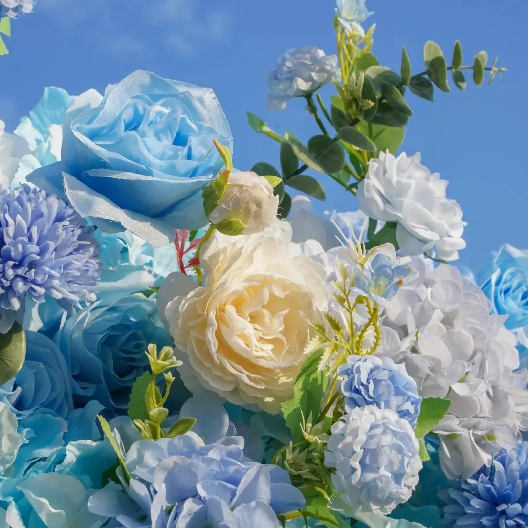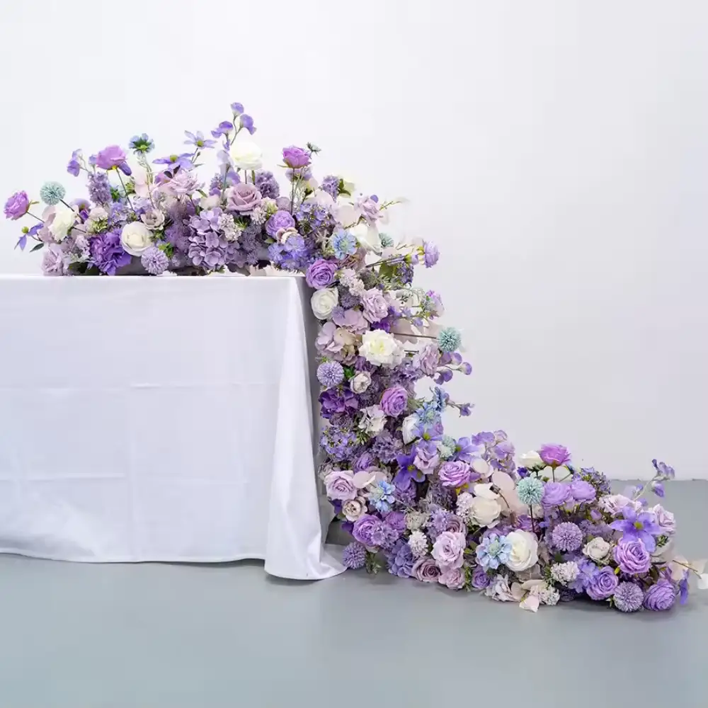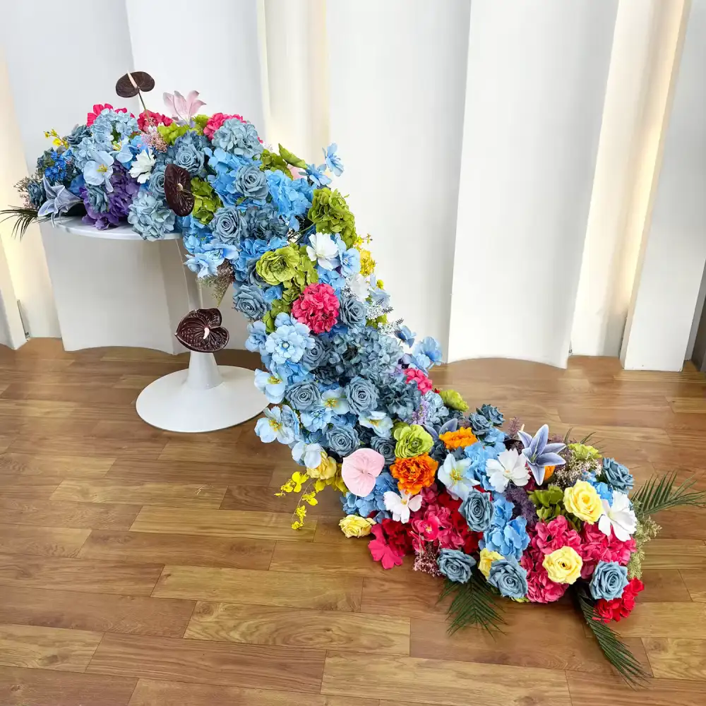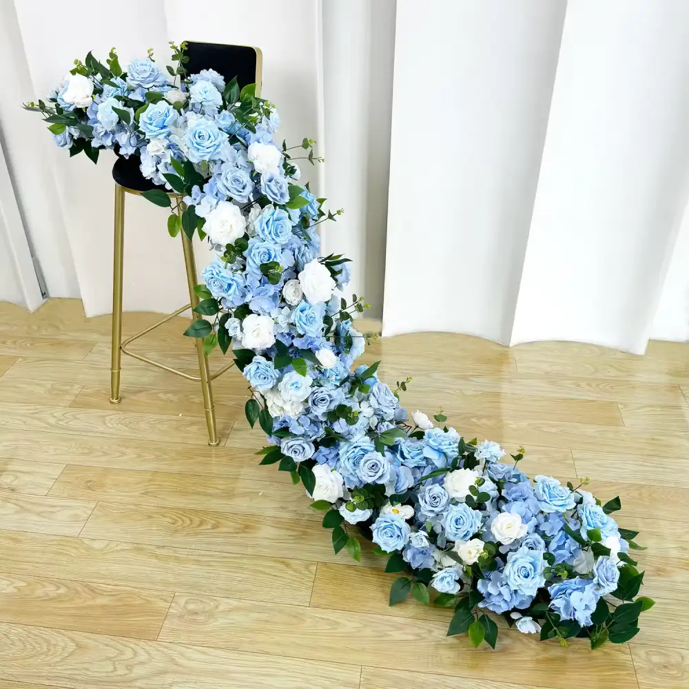 Artificial Blue Color Rose Hydrangea Flower Table Runner