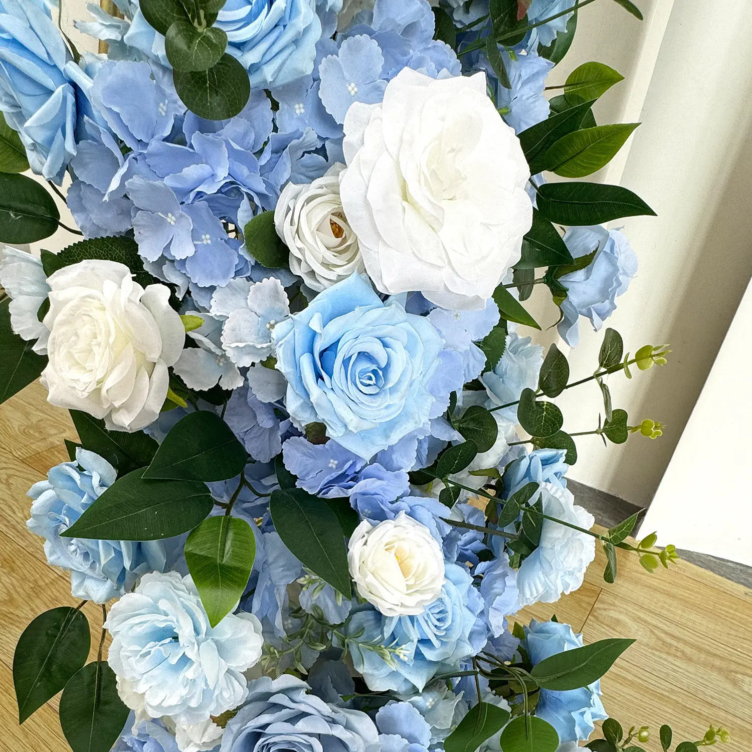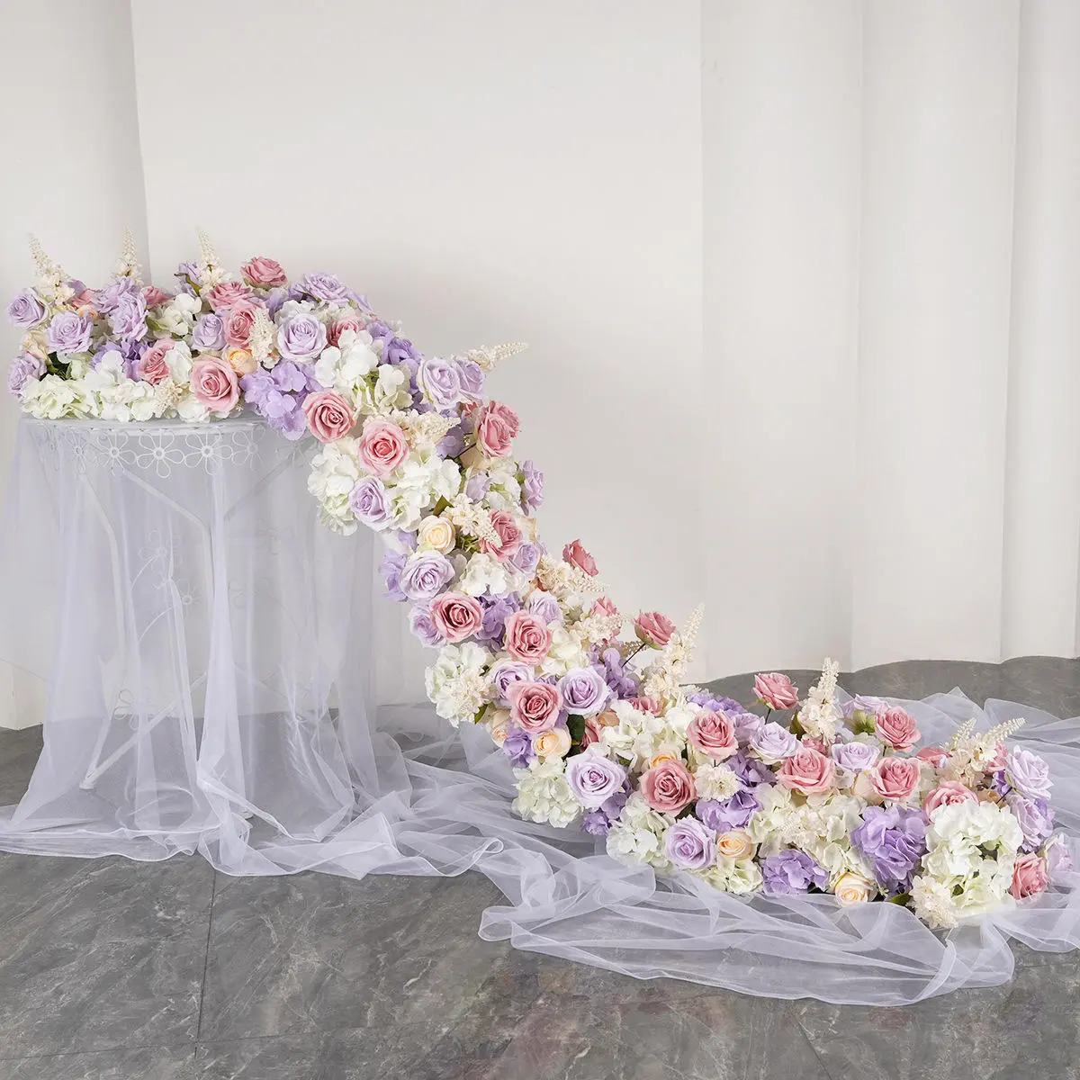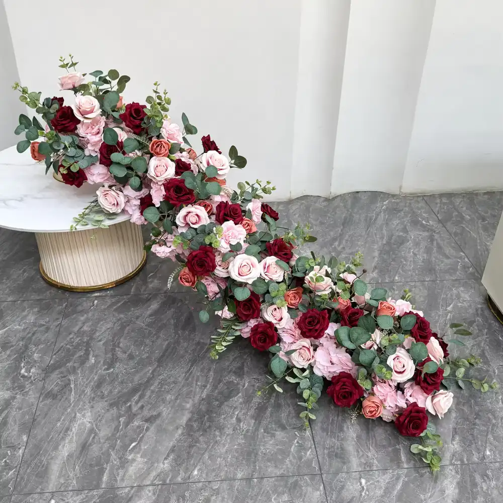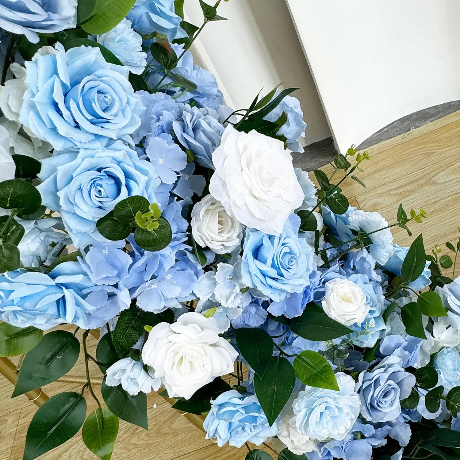 Artificial Blue Color Rose Hydrangea Flower Table Runner