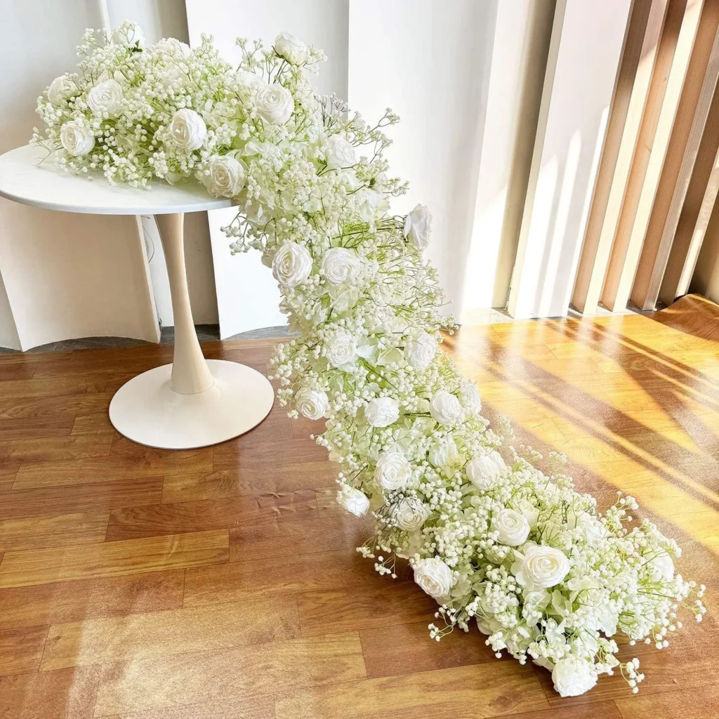Elevate your table settings with our exquisite centerpieces and decorative runners. Our artificial flower centerpieces range from compact, intimate arrangements for intimate dinners to grand, cascading designs for banquet tables, while our floral runners add a continuous, luxurious touch along the length of your tables. Featuring a mix of textured blooms and greenery, they bring warmth and sophistication to any dining or reception space, without the hassle of wilting or water maintenance.